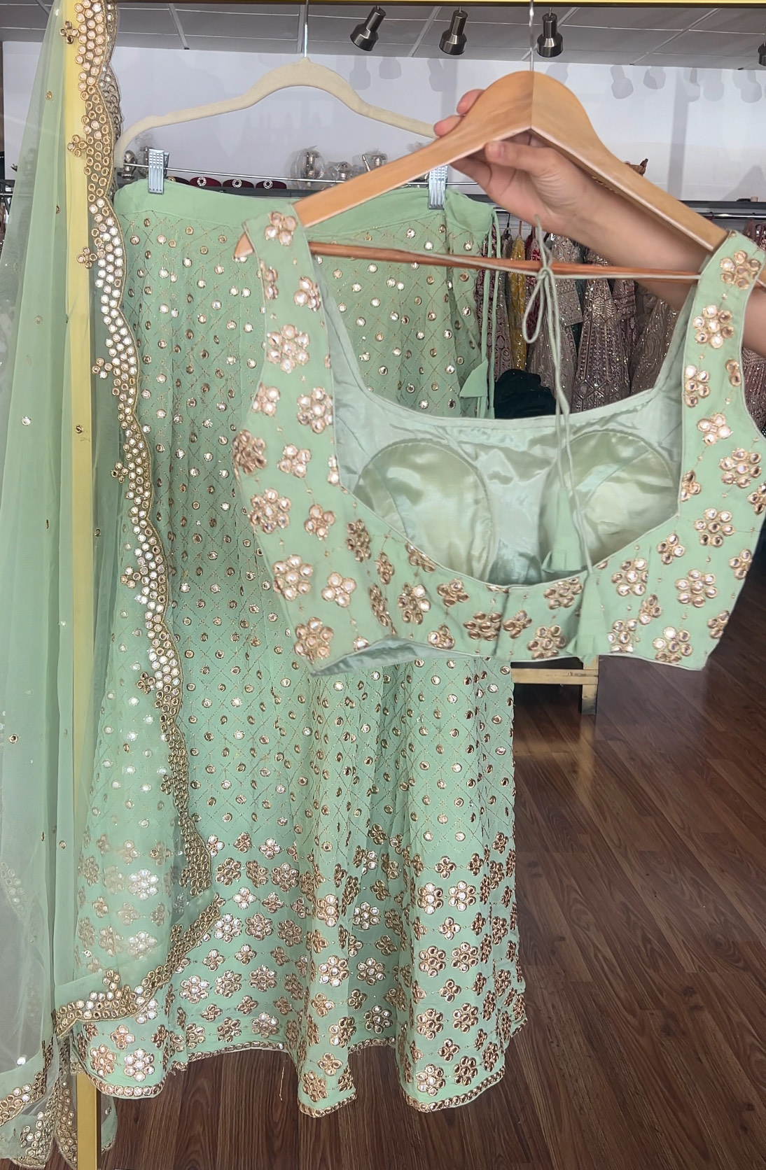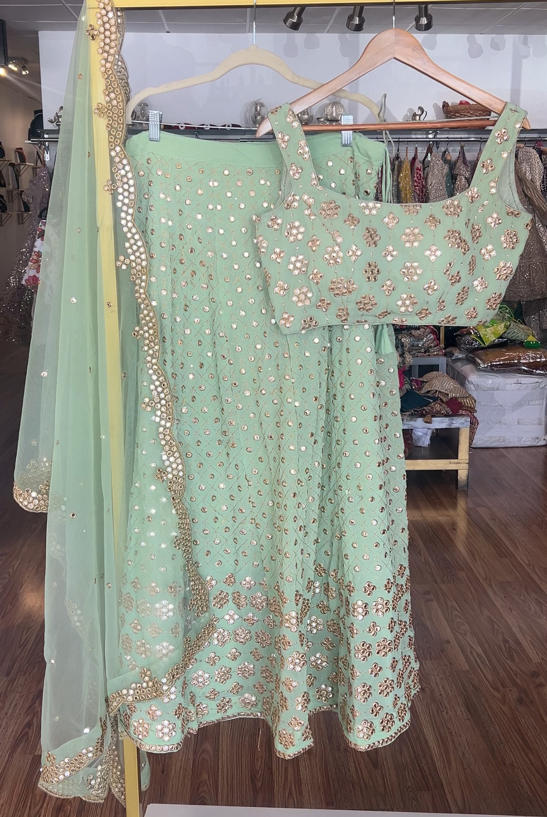 SKU:2345434345 Category:Lehengas | Pre-order Tags:lehenga, lime, mint green, mirrorwork